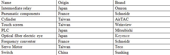 2) Pnevmatik hissələrdə, elektrik hissələrində və əməliyyat hissələrində qabaqcıl dünyaca məşhur marka komponentlərinin qəbul edilməsi.